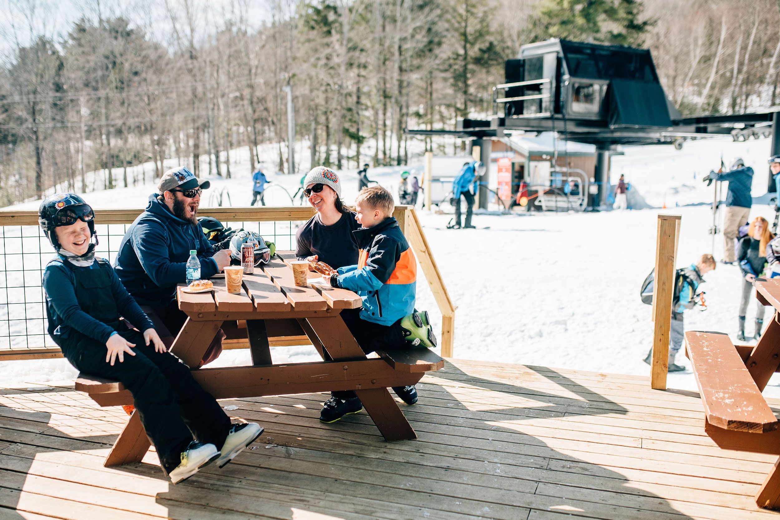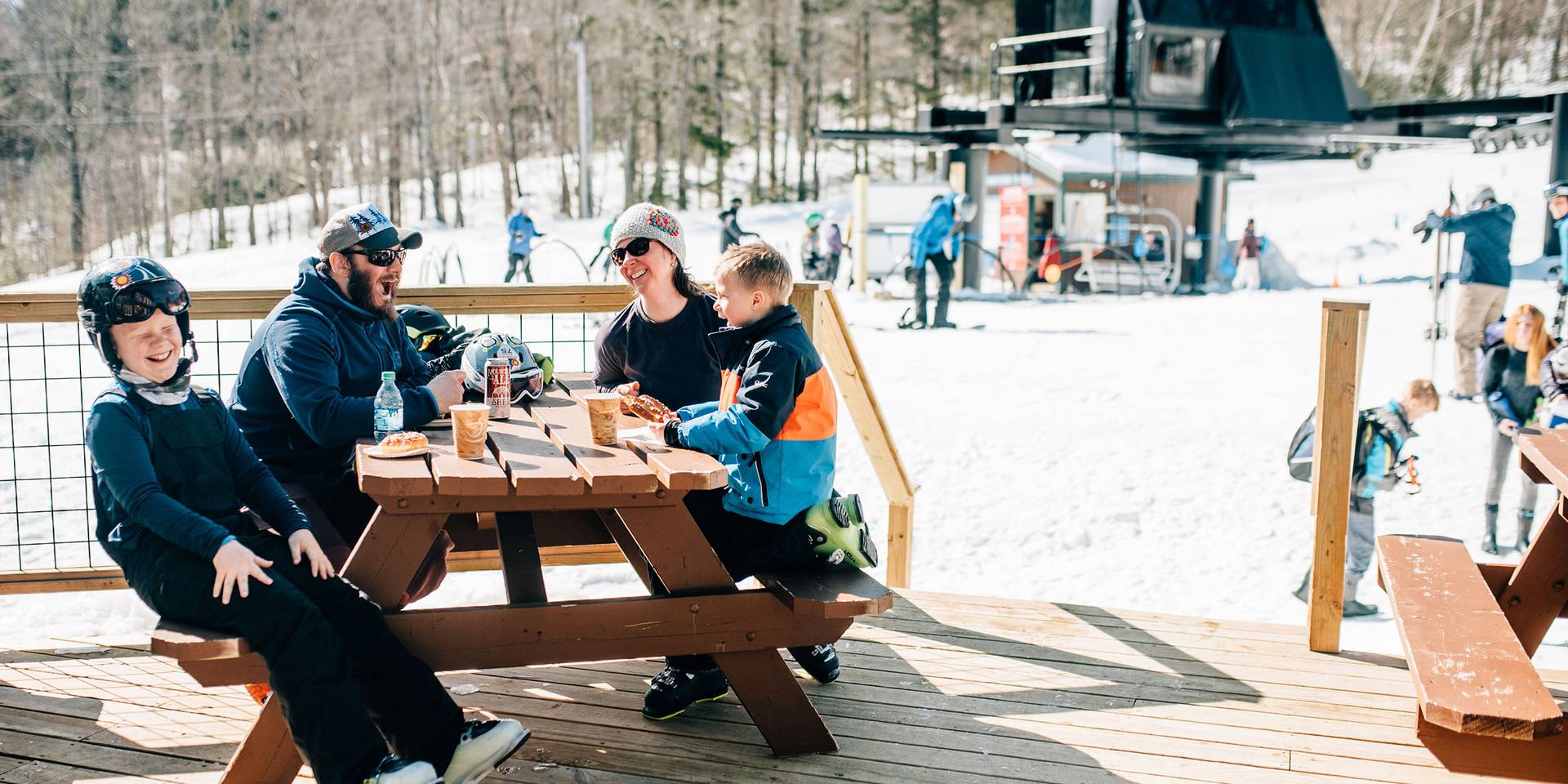 A smaller self-serve venue offering light meals, snacks, and adult beverages. The perfect spot to stop and refuel, the East Lodge is at the bottom of the Sunnyside Triple. Open on weekends and holidays it's a favorite for those who enjoy a relaxed atmosphere and the notoriously sunbaked deck.